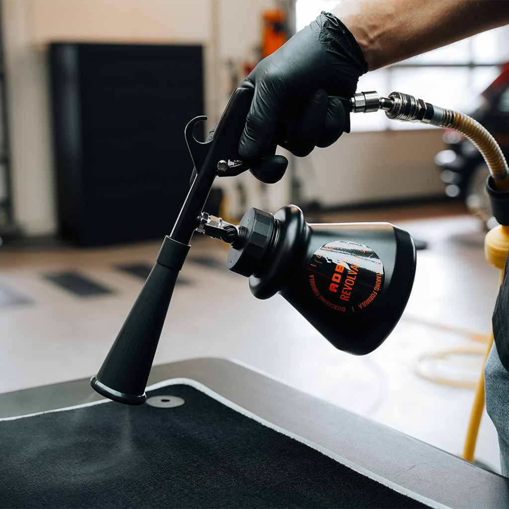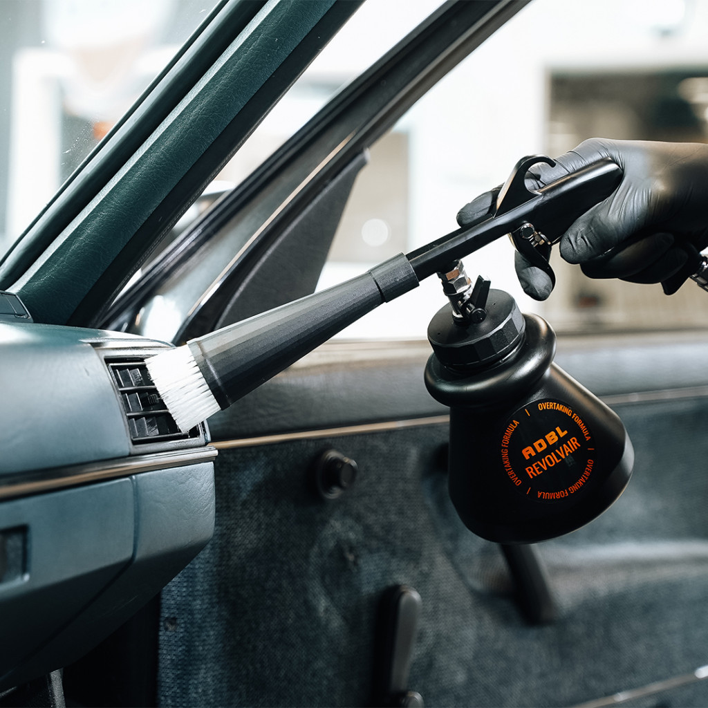 Da ADBL REVOLVAIR is a pneumatischa Pistole für Sitzbezüge, Autoteppiche und olle mögli Kunststoff-Teile. Durch’n rotierenden Strahl werd’n de Schmutzpartikel sauber vo da Oberfläche abg’löst – gscheid schnell und effektiv.
