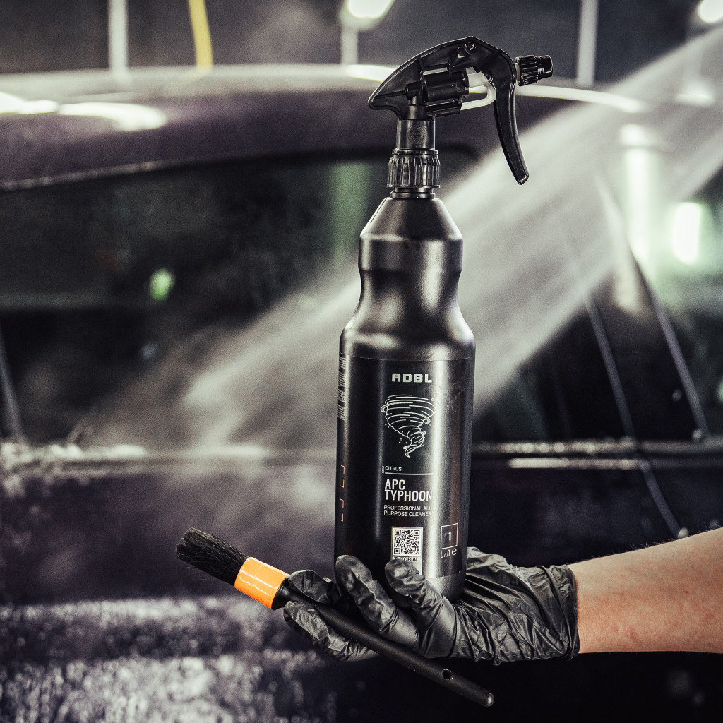 Der ADBL APC Typhoon ist ein konzentrierter, sehr starker Universalreiniger zur Entfernung hartnäckigster Verschmutzungen von Kunststoff-, Vinyl- und Stoffoberflächen oder vom Außenbereich des Autos. Seine gut schäumende Formel dringt in die Verschmutzungen ein und löst sie auf, besitzt eine hohe Entfettungswirkung. Enthält natürliche, auf Zitrus basierende Inhaltsstoffe, ist sanft zu den Atemwegen und hat einen angenehmen Duft. Das Produkt kann auch sicher und effektiv mit einer Druckluftpistole verwendet werden.