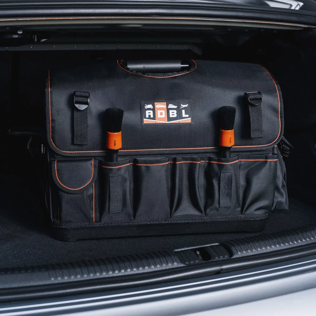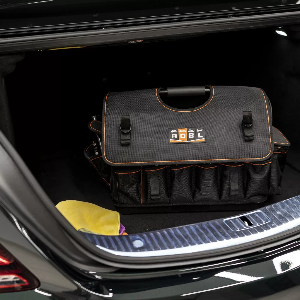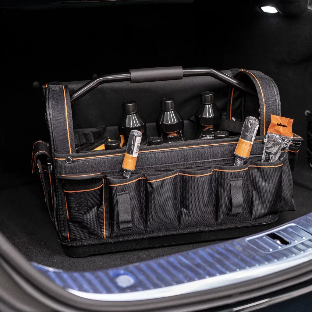 Hochwertige Autokosmetiktasche, aus 100% Polyester, mit modernster Technologie hergestellt. Ermöglicht den Transport mehrerer Produkte, die modularen Fächer ermöglichen es, das Innere der Tasche an unsere eigenen Bedürfnisse anzupassen.
