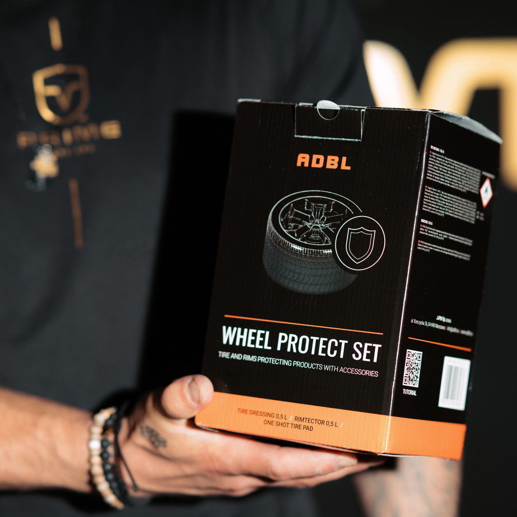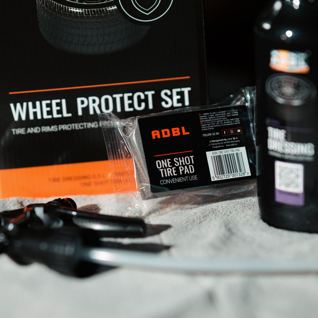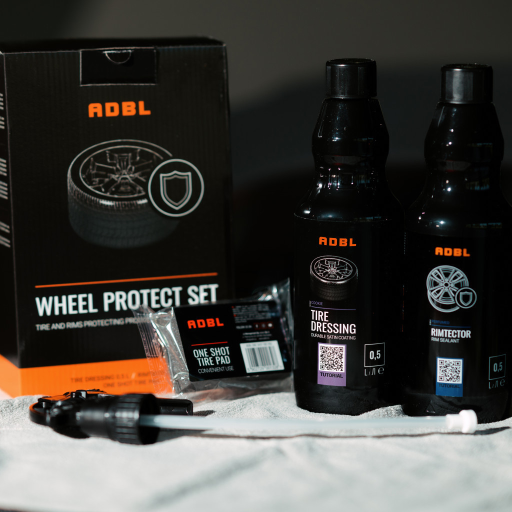 Mit dem ADBL Tire Dressing SiO2 und dem ADBL One Shot Tire Pad Applikator kannst du die Reifen pflegen und schützen, während der im Paket enthaltene ADBL Rimtectordeine Felgen widerstandsfähiger gegen Verschmutzungen macht. Das Endergebnis sind tiefschwarze und wasserabweisende Reifen sowie glänzende und wasserabweisende Felgen.