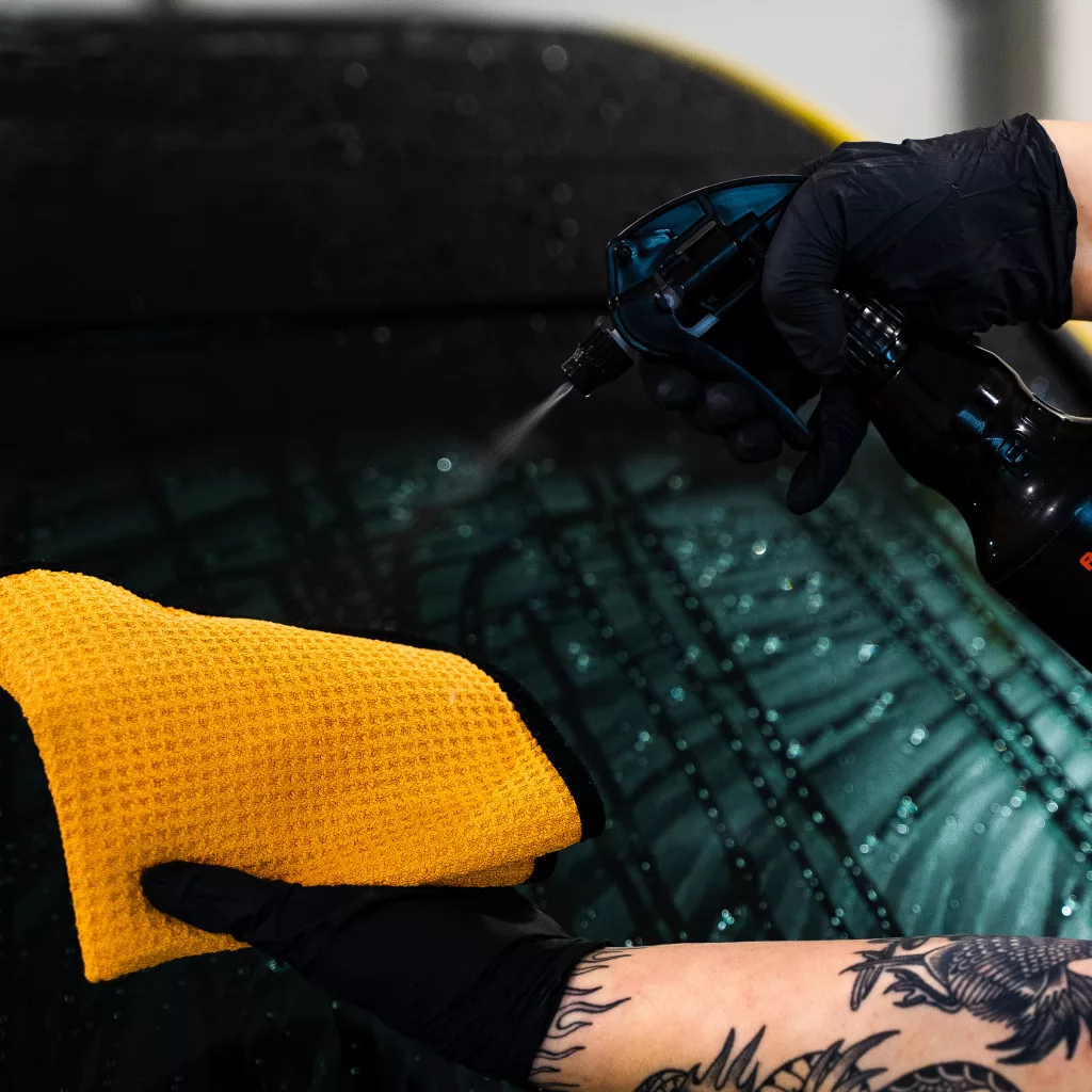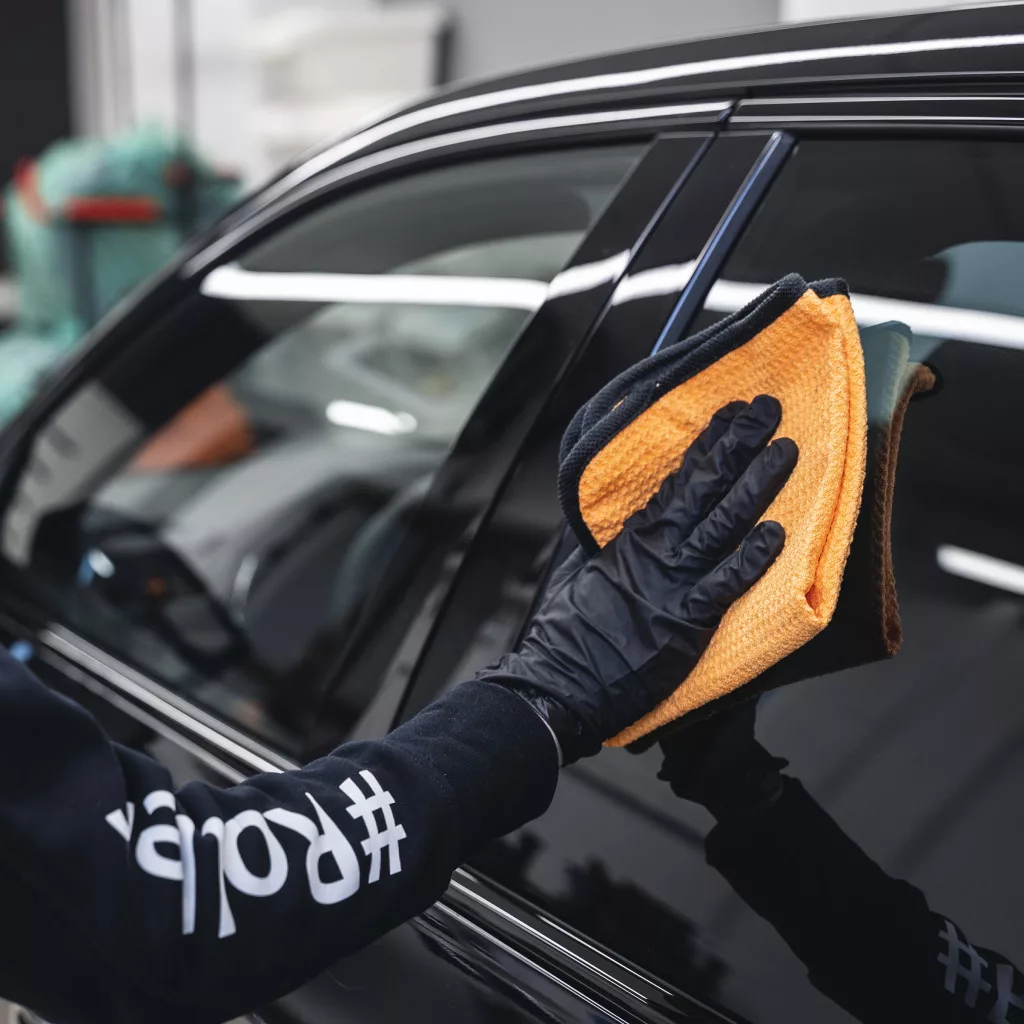 Wenn es um die Reinigung von Glas geht, sollte man ohne das ADBL Goofer Towel nicht anfangen. Die spezielle dichte Webart, fusselfreie Zusammensetzung und das waffelförmige Muster ermöglichen die effektivste Reinigung. Traditionelle Tücher schmieren nur auf einem verschmutzteren Glas, hier hingegen sammelt sich 80% des Schmutzes in den Vertiefungen an.