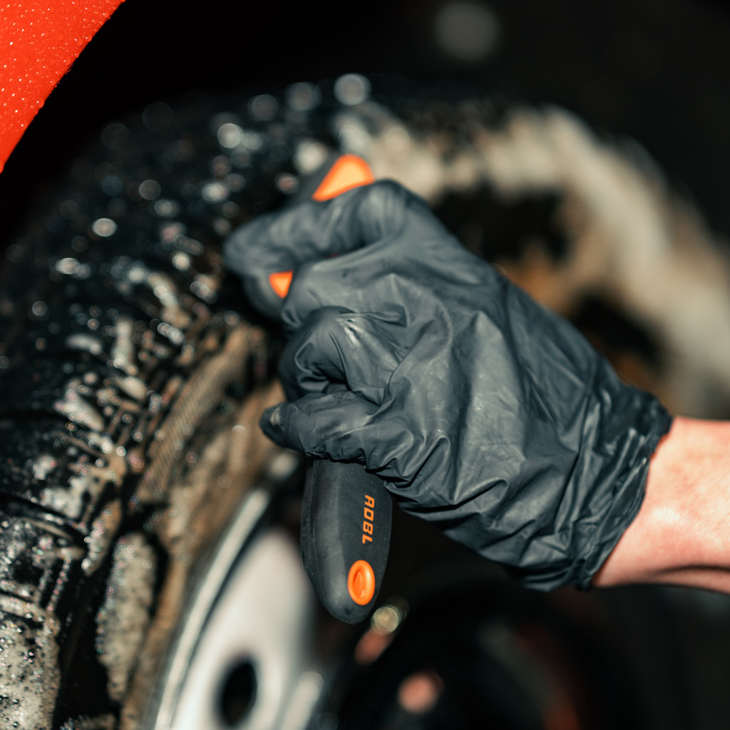 Der ADBL Tire Brush ist eine mittelgroße, dreieckige Reifenreinigungsbürste. Dank seines Designs und seiner Form können selbst sehr schmale Reifen sicher gereinigt werden. Die Borsten sind dicht, steif und chemikalienbeständig, sodass sie effektiv Schmutz aus den Rillen der Reifen entfernen können. Der Griff besteht aus sehr starkem Kunststoff und ist mit einer rutschfesten Gummischicht versehen.