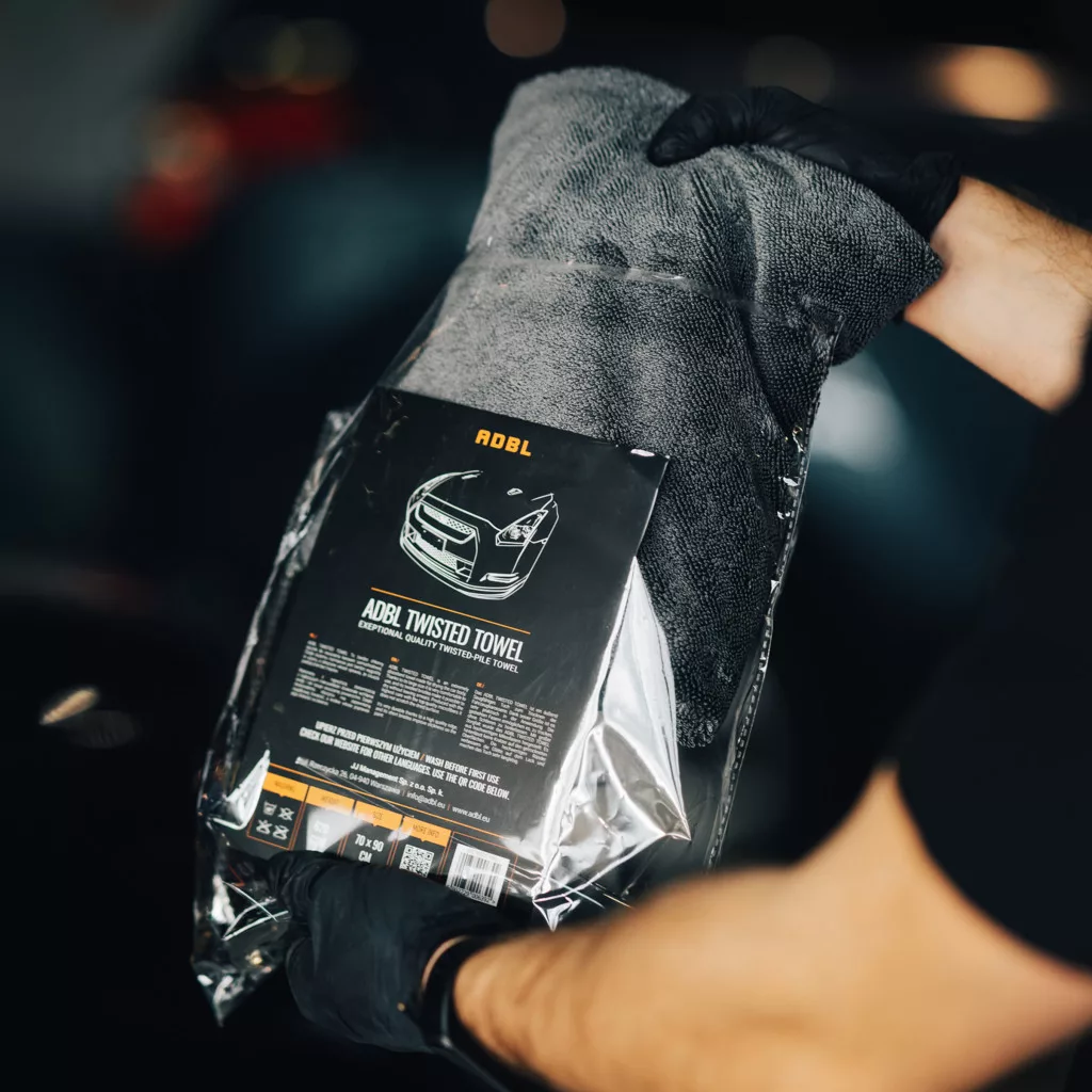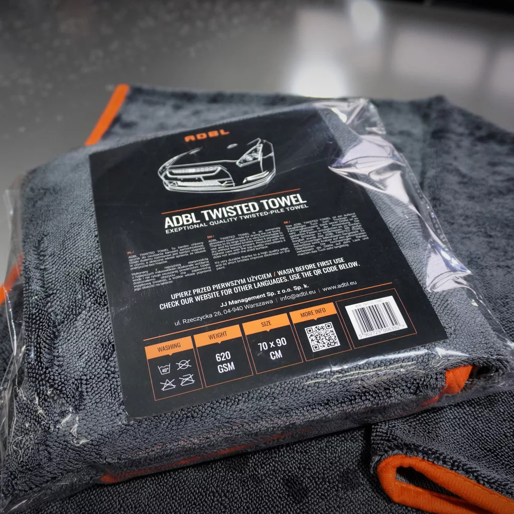 Die hochwertigen Fasern in Kombination mit einer einzigartigen Webart, solidem Rand und großer Größe machen das ADBL Twisted Towel extrem saugfähig, es trocknet die Oberfläche streifenfrei, ist sicher in der Anwendung, kratzt nicht und schont die Karosserie. Dank der speziellen Faserstruktur kann es mit einem Gewicht von 620 GSM genauso viel Wasser aufnehmen wie seine Konkurrenten mit über 1000 GSM, jedoch ist die Anwendung viel einfacher.