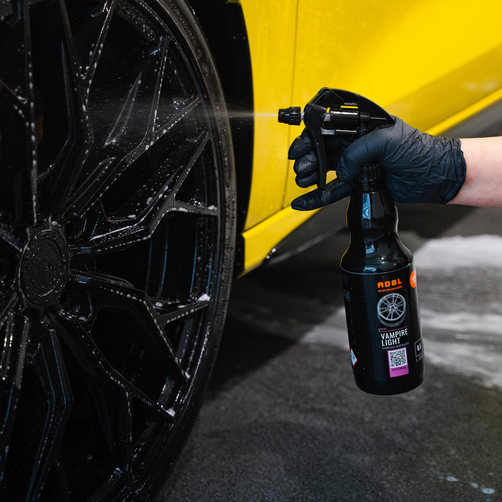 Das ADBL Vampire Elixir ist ein pH-neutrales, äußerst gleitfähiges Gel für die regelmäßige, sogar tägliche Reinigung von Felgen. Perfekt zum Entfernen von Bremsstaub und Straßenschmutz. Die neue Formel bietet unglaubliche Kraft und extrem hohe Haftung, wodurch sie viel effektiver ist als ihre Konkurrenten. Es enthält auch Korrosionsschutzmittel, sodass es weniger mit der Bremsscheibe und anderen unlackierten Metalloberflächen reagiert. Wenn das Produkt reagiert, ändert sich seine Farbe zu einem Lila-Ton. Je nach Verschmutzungsgrad empfiehlt es sich, die Oberfläche mit einem Autopflegepinsel zu bearbeiten, die Gleitmittel verhindern Kratzer. Mit einem Hochdruckwasserstrahl vollständig abspülbar.