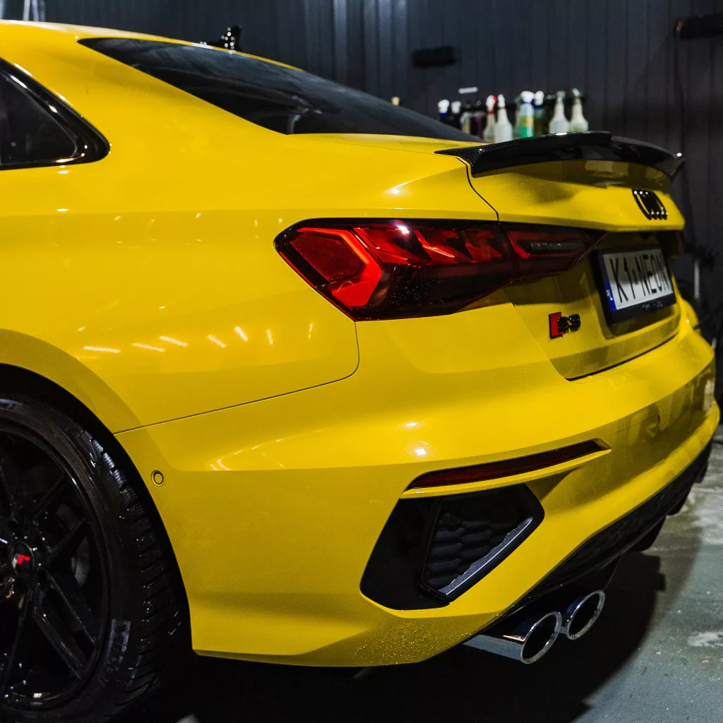 1. Wählen Sie ein Element aus, das gereinigt werden soll. Sprühen Sie die Oberfläche so ein, dass der Sprühnebel die gesamte Fläche gut abdeckt. Die Oberfläche sollte kühl sein, es darf nicht auf erhitzte Teile (Kotflügel, Tür, Felge usw.) aufgetragen werden!