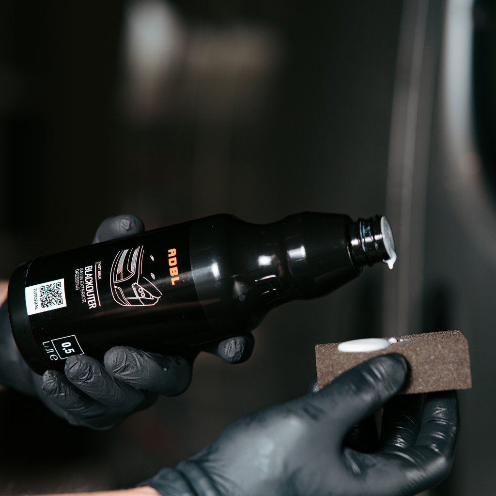 Der ADBL Blackouter ist ein wasserbasiertes Pflegeprodukt mit hohem Polymergehalt für unlackierte Außenteile aus Kunststoff. Seine Wirkung entspricht der von lösungsmittelbasierten Produkten, vertieft die Farbe, erneuert die Oberfläche und sorgt für eine dunkle und satinierte Oberfläche, die mehrere Wochen halten kann. Kann auch auf älteren Kunststoffen verwendet werden, wo der Einsatz von lösungsmittelbasierten Produkten nicht sicher wäre.